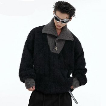 Men’s Striped Turtleneck Sweater – Loose Fit, Patchwork Knit