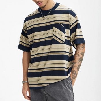 Oversized Striped Pocket T-Shirt for Men