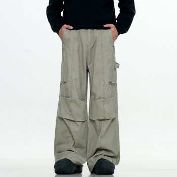 Men’s Casual Multi-Pocket Pleated Pants with Straight Leg