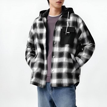 Men’s Spring Patchwork Jacket with Detachable Hood – Stylish & Lightweight