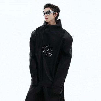 Men’s Loose PU Leather Hoodie – Rivet Detail, Darkwear Style