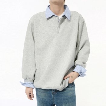Men’s Fleece Sweatshirt with Fake Two-Piece Design and Turn-Down Collar