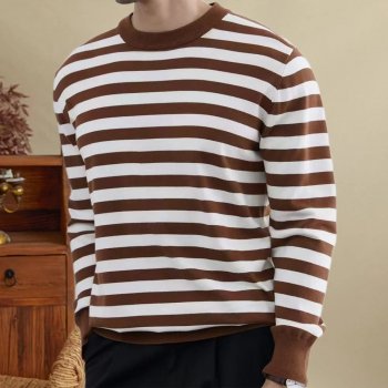 Striped O-neck Knitted Sweater for Men