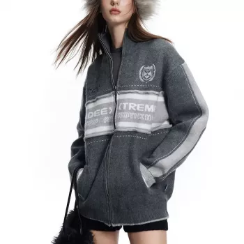 Vintage Contrast Embroidered Turtleneck Sweater Cardigan
