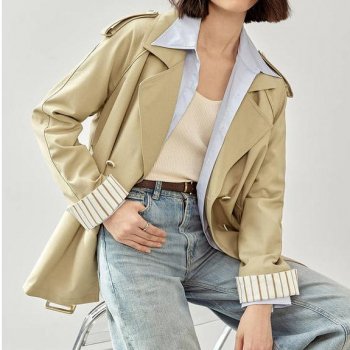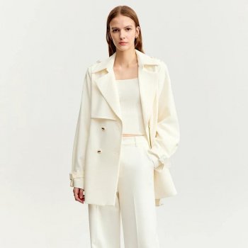 Women’s Double-Breasted Loose Fit Trench Coat with Sashes