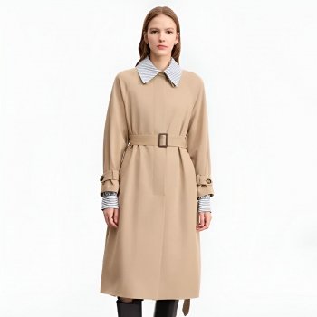 Women’s Double-Breasted Long Trench Coat for Autumn and Winter