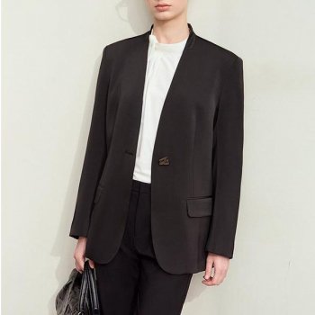 Women’s V-Neck Satin Blazer with Wide Shoulder Pads