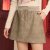 Retro Coffee Color Mottled A-Line High Waist Drawstring Short PU Skirt for Women