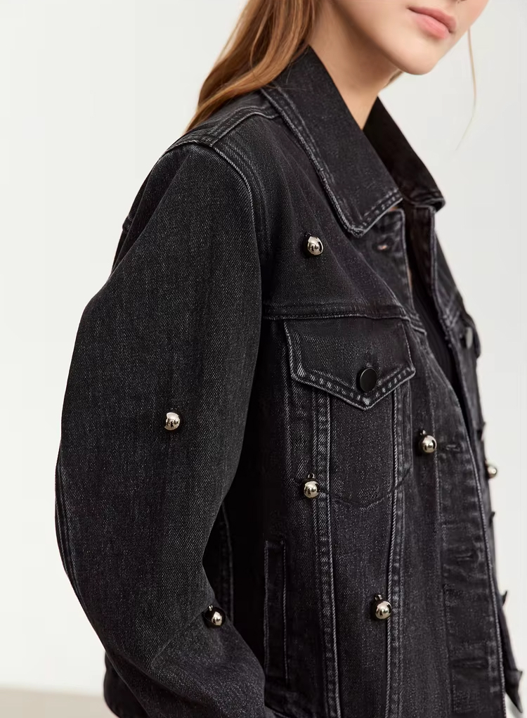 Step into the new season with confidence and style in this vintage-inspired denim jacket. Designed for trend-conscious women who love a mix of edgy and elegant, this coat features exquisite pearl bead embellishments that add a touch of sophistication to the rugged denim fabric. The classic lapel collar and carefully crafted button-down design offer a timeless appeal, making this piece a must-have for your autumn and winter wardrobe.