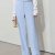 The solid-color base is elevated with delicate contrast embroidery, adding a refined yet subtle detail that enhances the overall aesthetic. The flat front and zipper fly closure provide a seamless and professional look, making these trousers ideal for workwear or stylish everyday ensembles.